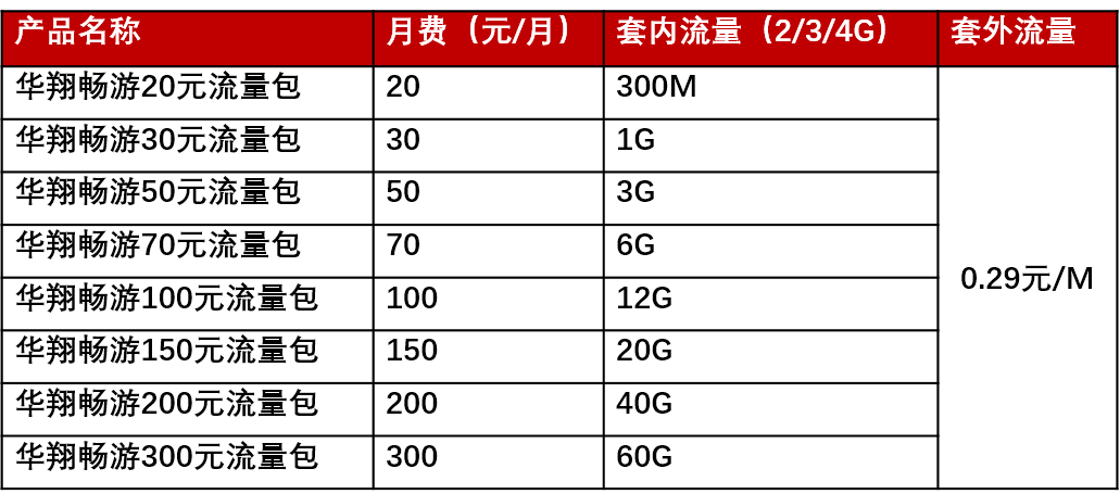 华翔联信新流量套餐上线,流量大放价(移动版)