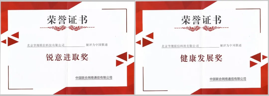 (华翔联信荣获“中国联通锐意进取奖”和“中国联通健康发展奖”)